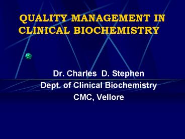 QUALITY MANAGEMENT IN CLINICAL BIOCHEMISTRY PowerPoint PPT Presentation