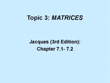 <Notice: Removed> Topic 3: MATRICES PowerPoint PPT Presentation