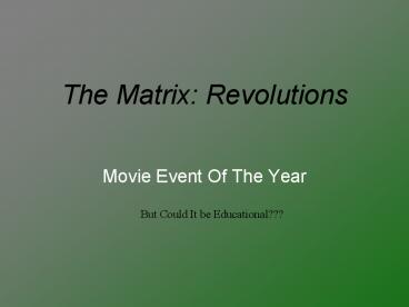 The Matrix: Revolutions PowerPoint PPT Presentation
