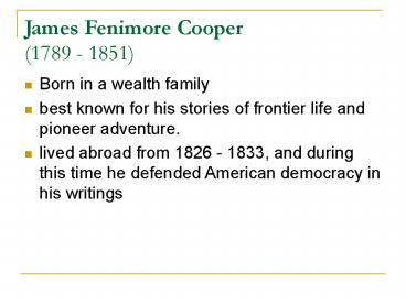 <Notice: Removed> James Fenimore Cooper (1789 - 1851) PowerPoint PPT Presentation