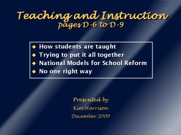 Title: Teaching and Instruction pages D6 to D9