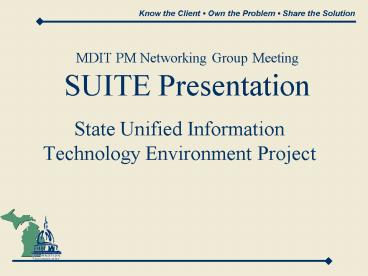Title: MDIT PM Networking Group Meeting SUITE Presentation