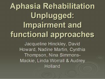 Aphasia Rehabilitation Unplugged: Impairment and functional approaches PowerPoint PPT Presentation