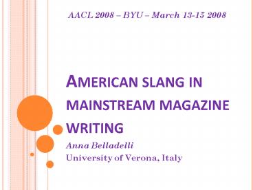 - SLANG SHOULD NO LONGER BE DESCRIBED AS