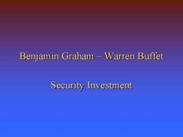 Benjamin Graham Warren Buffet PowerPoint PPT Presentation