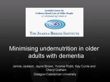 Minimising undernutrition in older adults with dementia PowerPoint PPT Presentation