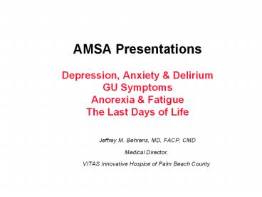 Title: AMSA Presentations Depression, Anxiety
