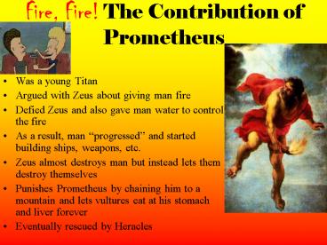 Fire, Fire The Contribution of Prometheus PowerPoint PPT Presentation