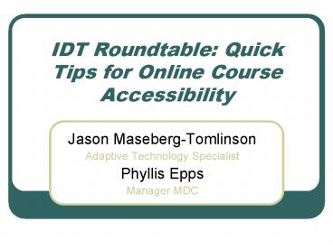 Title: IDT Roundtable: Quick Tips for Online Course Accessibility