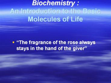 <Notice: Removed> Biochemistry : An Introduction to the Basic Molecules of Life PowerPoint PPT Presentation