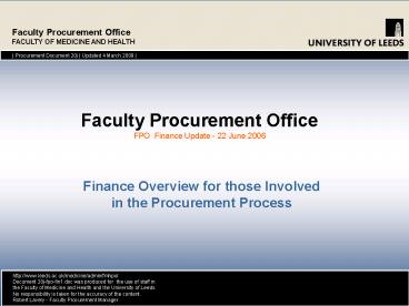 1Faculty Procurement Office FACULTY OF MEDICINE
