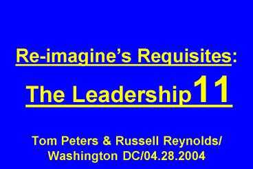 Title: Reimagines Requisites: The Leadership11 Tom Peters