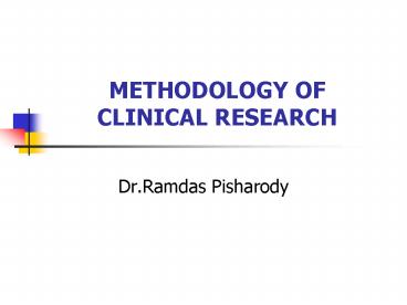 Title: METHODOLOGY OF CLINICAL RESEARCH