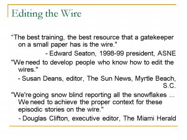 <Notice: Removed> Editing the Wire PowerPoint PPT Presentation