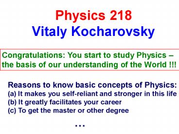 1Physics 218 Vitaly Kocharovsky