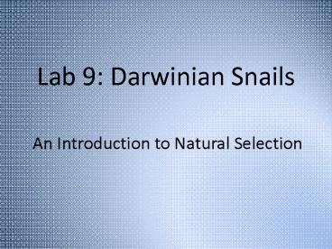 Lab 9: Darwinian Snails PowerPoint PPT Presentation