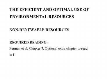 efficient and optimal allocation of non-renewable