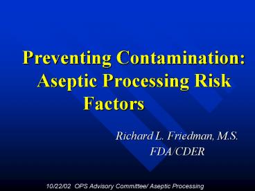 Title: Preventing Contamination: Aseptic Processing Risk Factors