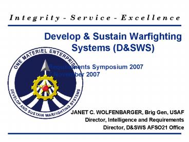 - JANET C. WOLFENBARGER, Brig Gen, USAF