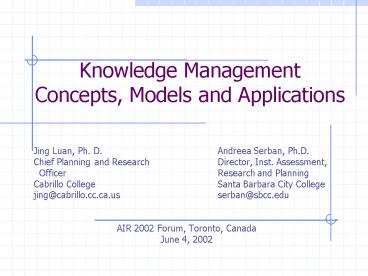 - Jing Luan, Ph. D. Andreea Serban, Ph.D.
