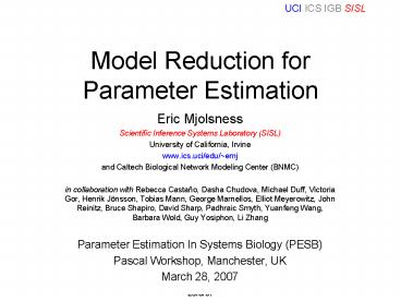 Wold, Guy Yosiphon, Li Zhang - Parameter Estimation In Systems Biology (PESB)