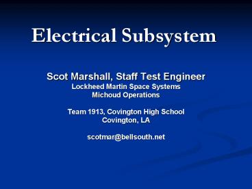 <Notice: Removed> Electrical Subsystem PowerPoint PPT Presentation