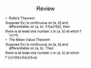 • 1) If f (c) 0 and f (c)lt0, then f has a