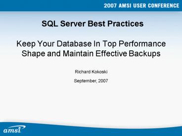 <Notice: Removed> SQL Server Best Practices PowerPoint PPT Presentation