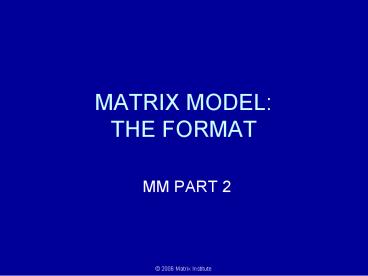 <Notice: Removed> MATRIX MODEL: THE FORMAT PowerPoint PPT Presentation
