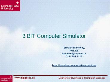 3 BIT Computer Simulator PowerPoint PPT Presentation