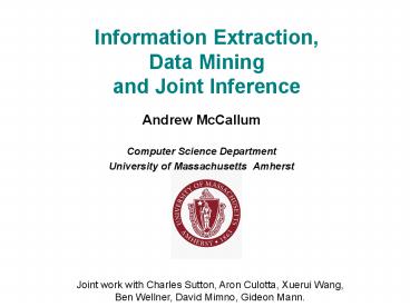 errors in information extraction and data mining. - Challenge making inference learning scale to