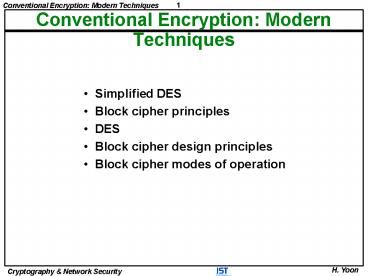 Title: Conventional Encryption: Modern Techniques