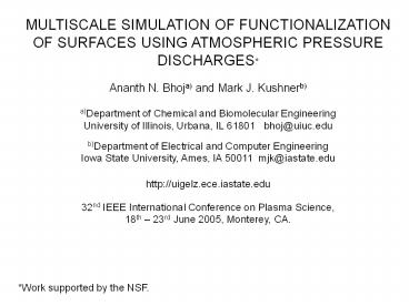 Title: MULTISCALE SIMULATION OF FUNCTIONALIZATION OF SURFACES USING ATMOSPHERIC PRESSURE
