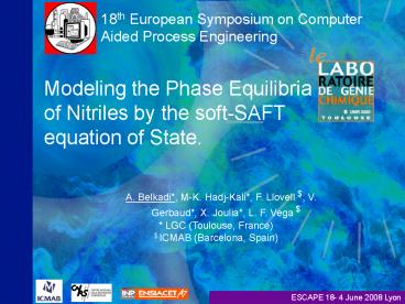 A. Belkadi, M-K. Hadj-Kali, F. Llovell ,