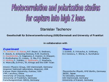 Experiment Th. Stöhlker, D. Banas, H.F. Beyer, G.