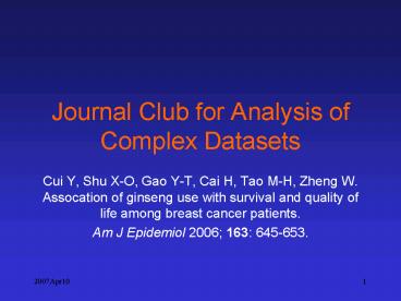 Journal Club for Analysis of Complex Datasets PowerPoint PPT Presentation