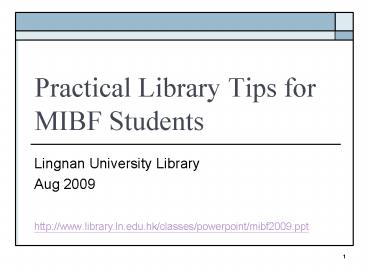 Practical Library Tips for MIBF Students PowerPoint PPT Presentation