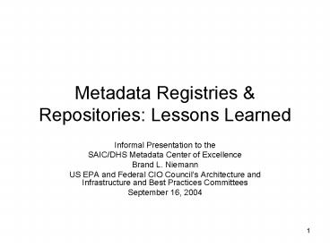 1Metadata Registries Repositories Lessons