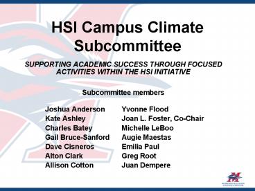 HSI Campus Climate Subcommittee PowerPoint PPT Presentation