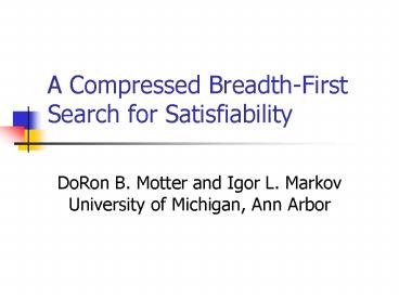 A Compressed BreadthFirst Search for Satisfiability PowerPoint PPT Presentation
