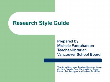 <Notice: Removed> Research Style Guide PowerPoint PPT Presentation