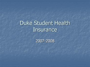 Duke Student Health Insurance PowerPoint PPT Presentation