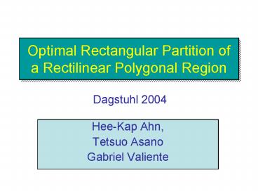 <Notice: Removed> Optimal Rectangular Partition of a Rectilinear Polygonal Region PowerPoint PPT Presentation