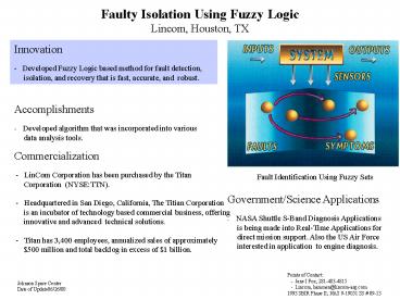 Faulty Isolation Using Fuzzy Logic Lincom, Houston, TX PowerPoint PPT Presentation