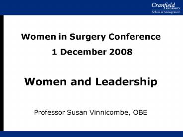 1Women in Surgery Conference 1 December