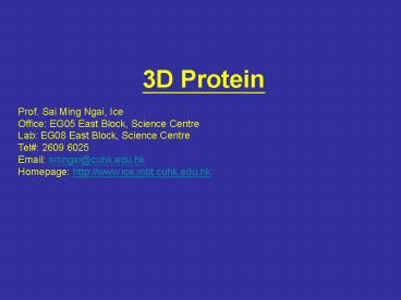 13D Protein Prof. Sai Ming Ngai, Ice Office EG05