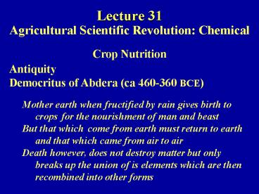 Title: Lecture 31 Agricultural Scientific Revolution: Chemical