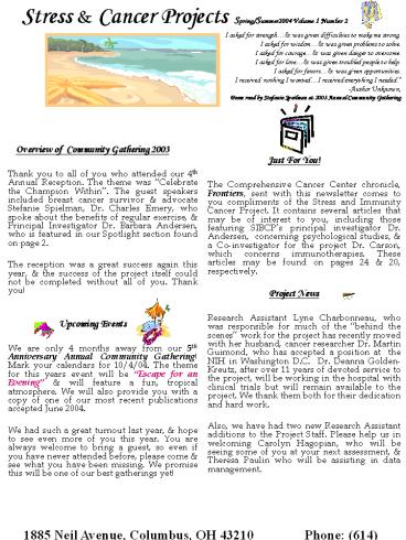 compliments of the Stress and Immunity Cancer