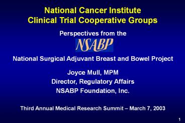 Group Trial Program for cancer-related trials. - Individual Group (NSABP) perspective example of
