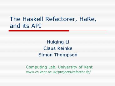 31www.cs.kent.ac.uk/projects/refactor-fp/